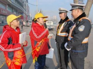 12月23日上午,由实验小学学生组成的”文明小分队“走上街头,慰问了正在冒着严寒指挥交通的交警,向他们致以新年的问候并送上了同学们亲手制作的新年贺卡。秦华摄