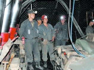 大伙儿:(一齐大声)嗨嗨。(意为告知井下的工人迅速躲开)