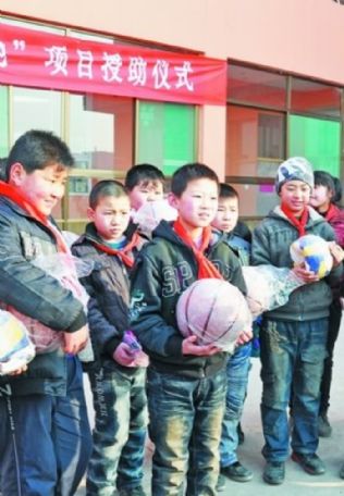 两学校收到“希望工程快乐体育园地”项目文体器材