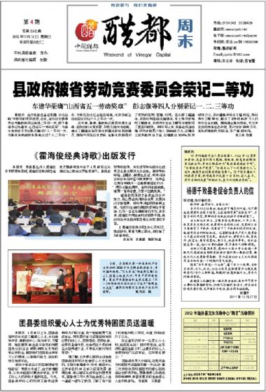 本报讯我县著名诗人霍海俊多年积累集萃的《霍海俊经典诗歌》首发式暨新闻发布会于1月10日在东湖宾馆...