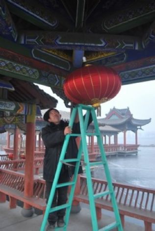 其实,牛师傅的工作可不止破冰这一项,无论大事小事,好事坏事,简单的复杂的,安全的危险的,只要和怡心园有关的,那么,都归他管。例如,湖面不结冰时,他会与工作人员划着船在湖中清理垃圾,有几次碰到令人惊悚的浮尸,牛师傅并无畏惧,每次都积极参与打捞工作;环湖路上近250米的葡萄长廊,葡萄一年四季的管理、修剪与保护工作也是由牛师傅负责的;平日园内园外的花草植被的修剪他更是责无旁贷;这不,眼看着春节快到了,牛师傅开始忙前忙后挂彩灯,“我们要让怡心园向外界展示最靓丽的一面,这是我的职责所在”,牛师傅言语中透露着坚定。