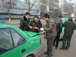 为确保春运期间出租车规范、有序运营,县城市客运办加大了对出租汽车市场的监管力度,针对节日期间黑车等非法运营现象出现反弹和出租车违章违规投诉增多的情况,他们及时组织人员在假期和节后进行安全规范大检查。一是重点遏制非法运营现象反弹,对节日期间擅自张挂明显出租标识的非法运营车辆进行打击、查处;二是加强安全监管,对车辆安全性能、防护设施、消防器材进行排查;三是规范运营行为,对违章投诉行为进行核查、落实,对投诉事件属实的依据《太原市客运出租汽车管理办法》予以处理。图为执法人员在对出租车进行安全检查。