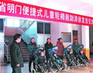 2月22日,我县10名脑瘫患儿分别领到了由中国残疾人福利基金会和台湾明门(中国)幼童用品有限公司无偿捐赠的康复专用轮椅。本通