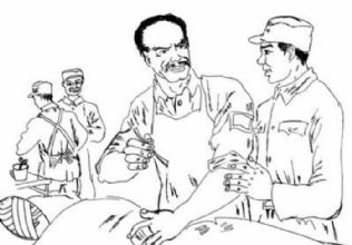 米勒听王立岗说这里有一批伤员,连饭也顾不上吃,就来到病房查看。他用热水轻轻地为伤员洗伤口,挤脓血,消毒后缠上绷带……在他的精心医护下,伤病员很快就恢复了健康。后来,敌人的封锁很紧,地下护送通道一时难以打通,米勒和同志们暂时去不了延安,只好分散住在老乡家里。一件有趣的事发生了,山区的小炕较窄,身高1.8米的米勒睡觉时两只大脚只好委屈地露在炕外。王立岗灵机一动,找来几块大石头,加在了米勒睡觉的地方。根据地一度传为佳话的“一号床”就这样诞生了。米勒和王立岗成了好朋友。米博士教王队长说英语,学唱法国的《马赛曲》,王队长教米博士认汉字,学唱《我们在太行山上》。
