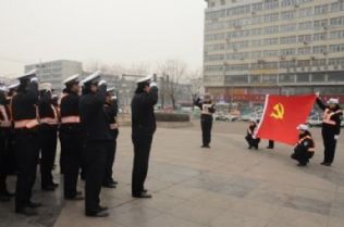 县交警大队“保持党的纯洁性、践行核心价值观、规范执法活动”启动仪式于3月1日上午在我县醋都广场举行。全体干警对着党旗庄严宣誓,决心从自我做起,从每一句用语,每一个动作入手,始终做到警容严整、动作标准、指挥有力、文明规范、热情服务,用实际行动向全县人民展示清徐交警队伍的良好形象,为人民群众出行安全创造安全、有序、畅通的道路交通环境。常映红摄影报道