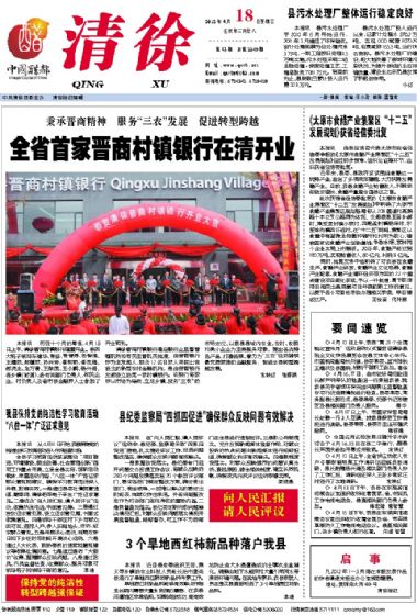 本报讯历经十个月的筹备,4月15日上午,清徐晋商村镇银行隆重开业。县四大班子领导车建华、张强、张...