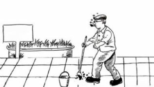 近年来,随着物质生活水平的提高,人们也越来越注重精神文化的改善,娱乐文化活动丰富多彩起来。有人清晨在广场用大型毛笔挥洒自如,形成了一道亮丽的风景线。然而笔者近日发现:有一些人在挥洒练字时将练字的清水替换成浓墨水,字迹干后,广场的地面上墨迹斑斑,对广场的市容环境造成了不良的影响。