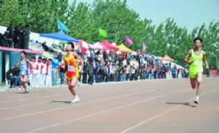 昨日上午,2012年全县中小学田径运动会在徐沟中学隆重开幕。本次运动会由县教育局、县文体广新局和团县委共同举办。来自31所中小学校的500余名选手将在为期3天的比赛中展开角逐。比赛项目包括跳高、跳远、铅球、铁饼、标枪、三级跳远等田赛项目和100米、200米、400米、800米、1500米、3000米等径赛项目。图为初中组男子4×100米接力预赛。陈宏健摄
