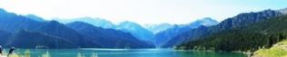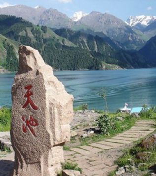 神话中的瑶池并不是一个虚幻的梦境。天池湖面海拔1911米,呈半月形,南北长3.5公里,东西宽0.8——1.5公里,最深处105米,面积4.9平方公里。我伫立天池边,只见湖水清澈晶莹,碧如翡翠,清纯怡人。湖周群山簇拥,峰峦叠翠,云杉似海,雪岭云影倒映水中。远处的博格达峰,白雪皑皑,晶莹耀眼。湖滨绿草如茵,山花烂漫,水谢、亭阁、寺庙,散布期间。我乘坐游艇,泛舟湖上,面对雄浑粗犷、质地清幽的天池风光,才真正领略到了大自然圣洁的美。天池四季,景色俱佳。冬天的天池,银装素裹,湖上坚冰如玉,是全国少有的天然滑冰场。古往今来,有多少文人墨客吟诗赋文,予以赞美。上世纪70年代初,郭沫若陪同西哈努克亲王到新疆旅游,临湖吟出:“一池浓墨沉砚底,万木长毫挺笔端”的诗句。