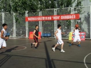 从6月11日下午起,县交警大队利用业余时间在县文体中心外篮球场举行“鸿信杯”篮球赛,这是县交警大队为活跃警营气氛,凝聚警心的一个重要举措。这次比赛为期一周,七个中队(科室)参加。常映红摄