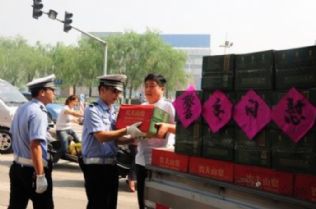 7月11日上午,六合村村委会将140余箱矿泉水送往县交警大队文源岗、清源岗、机动岗和徐沟中队、常庄中队,感谢他们在炎炎夏日为维持交通秩序所付出的艰辛。常映红摄
