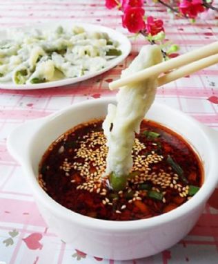 醮尖尖端上了餐桌,还要有醮料。一般在夏天西红柿成熟的季节,就要炒上西红柿来醮着吃。通常情况下,我妈就切上葱、姜、蒜倒进油锅里,炒出香味来以后,倒进醋和酱油,这样做成的调和,特别有一股香味。如果用羊油炒香后倒进葱、姜、蒜做成调和,就更有一番特别的风味。有时候把大蒜在蒜钵子里轧成细糊糊搅在这些醮料里吃,有时搅拌上些辣椒面面或辣椒酱,吃的人们忘记了饥饱,把心满意足全写在脸上。全家人围坐在饭桌前,尽情地享受着我妈精心制作的茭子面醮尖尖。吃出了全家人的和谐和欢乐。
