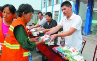 县总工会为环卫工人们送去白砂糖、矿泉水等夏季饮品