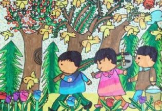王答乡赵家堡村的艺源画室活跃着一群可爱的“小画家”,他们来自本村和相邻的同戈站、北录树、南录树、徐沟、集义等乡村,这些孩子们小的只有五六岁,大的也不过十五六岁,他们都是赵家堡文化活动广场艺源画室的成员。艺源画室是由赵家堡村村民赵培文牵头组织、常丽丽老师创办的一个专门为农村孩子服务的文化活动组织。这是一个温馨的群体,充满了和谐积极的氛围,孩子们用动人的美术语言,创作出了一幅幅富有韵味的作品。