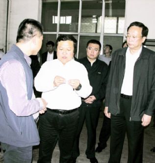 廉毅敏(中)对亚鑫集团发展新兴产业表示赞肯