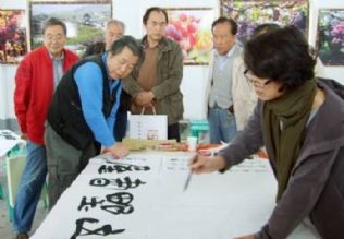 葡萄美酒迎宾客,中秋笔会泻豪情。