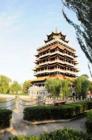 文源楼也叫水阁楼,位于东湖东南隅,外观酷似黄鹤楼。楼高49.88米,是清徐的象征。文源楼共9层,气势宏伟,雕梁画栋,斗拱挑角,琉璃瓦铺顶,汉白玉的栏杆,集亭、台、楼、阁于一体。登上文源楼顶层,清徐风光尽收眼底。