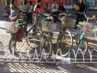 我县已安装螺旋式自行车停车架100组