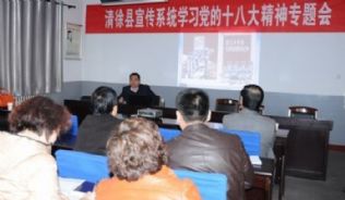11月28日上午,宣传系统学习党的十八大精神专题辅导在县广播电视台会议室举行。县委党校副校长张建刚就十八大精神重点内容做了深入浅出的辅导讲解。
