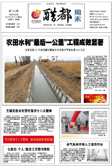 本报讯时下正值冬浇时节,哗哗的汾河水通过修葺一新的末级渠系流入百姓的农田里。孟封村赵姓村民高兴地...