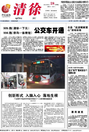 本报讯12月26日早6时,清徐开往太原的首班905路公交车准时从县汽车站驶出站台开往太原。当日,...