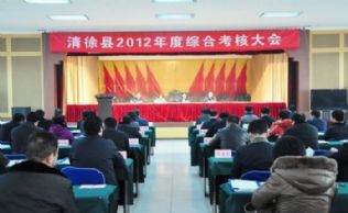本报讯1月14、15日,由市委常委、宣传部长张春根,市政协副主席冯霞带队的市委考核组对我县2012年度工作进行综合考核。1月14日上午,清徐县2012年度综合考核大会在东湖宾馆二楼会议厅召开。张春根、冯霞出席。市委综合考核组组长、市委组织部副部长、人社局局长王富旺主持会议,县委书记车建华代表县领导班子作述职报告和干部选拔任用工作报告,并作个人述职述廉述学报告。县四大班子领导、市管领导干部、有关部门负责人参加了会议。