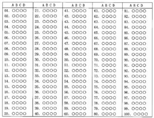 清徐县党的十八大精神知识竞赛答题卡
