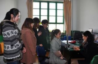 三八妇女节前夕,县人民医院护士车莉萍利用工余时间来到本社,为女记者、编辑们义务测量了血压。
