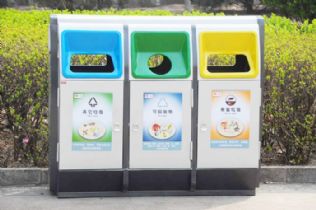 近日,醋都广场街心小公园内多个新型分类回收垃圾箱崭新亮相。每个垃圾箱都有三个入口,其中黄色入口装放家用废电池、荧光灯管、过期药品等有害垃圾,绿色入口装放纸类、塑料、金属、布类等可回收物,蓝色入口则装放可回收物、废玻璃、有害垃圾以外的各种生活废弃物。新型分类回收垃圾箱在方便人们扔垃圾的同时,也可以减少垃圾的处置量,实现垃圾资源利用,改善生存环境质量。