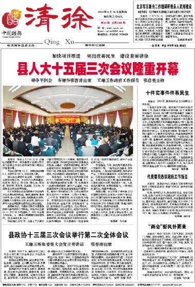 本报讯昨日上午8时30分,在雄壮的国歌声中,清徐县第十五届人民代表大会第三次会议在东湖宾馆二楼会...