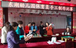 县东湖幼儿园把教师基本功的训练作为培训学习的重点之一。近日,该园利用休息日开展了保育员手工制作比赛。比赛中采用“限时不限料、命题现场制作”的方式,在2小时内,利用各种废旧材料,通过折、剪、粘贴、缝制等多种技能,最后制作出一个个富于童趣性、观赏性和教育性的精美作品。刘丽摄