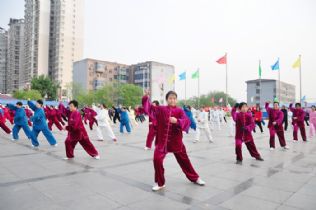 为庆祝“五一”国际劳动节,弘扬太极拳优秀文化,倡导全民健身运动,5月1日上午,我县百余名杨氏太极拳协会会员在东湖广场进行了太极拳、太极剑、太极刀集体展演活动。
