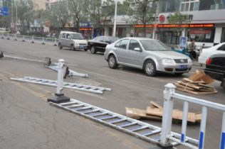一场大风将文源路工商银行门口的交通隔离栏刮得损坏严重
