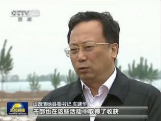 电视画面:(山西清徐县委书记车建华:干部也在这些活动中取得了收获,增进了与群众的感情,提高了群众工作能力。)