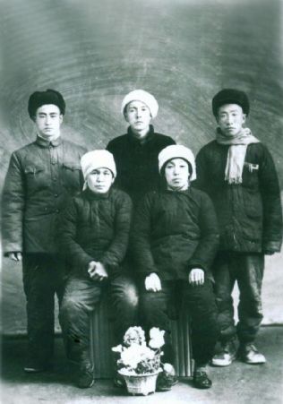 1959年12月,我哥哥韩树林18周岁,正在清徐县吴村中学读书。部队到学校挑选兵员,到福建前线保家卫国,他体检、政审全部合格。哥哥就要参军了,全家人很高兴,特地为他送行,此照是亲属们欢送时的合影。后排左一为哥哥韩树林,前排左一为母亲赵芝云。