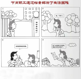 ①王大妈以前在清徐化纤厂工作;②后来这个厂倒闭了,王大妈变成了下岗职工;③有同事因为有招工手续办理了养老保险,同事告她去清徐县档案馆找找;④果然,王大妈当年的转正定级表在二轻局找到了。