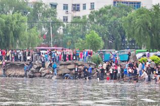 本报讯连续下了几天的雨刚停,水里憋久了的鱼儿因缺氧纷纷冒头换气,东湖岸边也出现了众人扎堆疯狂捞鱼的现象。6月21日中午,记者在东湖边看到,人们有的带上网兜,有的竖起钓竿,有的拿着鱼叉,有的则直接趴在湖边用手捞鱼,旁边还围着不少看热闹的人。