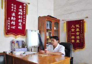 而立之年,对中医这个古老的职业来说,还是一个非常青涩稚嫩的阶段。而王逸群大夫似乎是一个特例,三十四岁的他总是处在患者群星拱月般的的簇拥下,在清源镇卫生院针灸科三间略显促狭简陋的诊疗室里,墙壁上挂满了新旧不一的锦旗,连柜顶上都随意堆放着患者送来的牌匾。坐在他的面前,能感觉到与他这个年龄并不相符的沉稳气质。在王逸群短短十多年的从医历程中,就已经手病患三万余例,治愈率达百分之八十以上,有效率百分之九十以上。即便是用锦旗中的那些溢美之词来形容他的高超医术也毫不为过,而更难能可贵的是,在这些红红的锦旗上,还有很多对镇卫生院优质服务的赞誉,透过这些表达热烈的言语,我们仿佛可以看到,这些大夫们在患者心中天使般的身影。身临其境,不由得让人想起了《陋室铭》中的佳句——“斯是陋室,惟吾德馨”。
