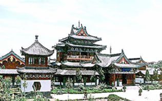 宋太宗御赐给杨业的“清风无佞天波滴水楼”是整座府衙的主体建筑。该楼为带夹层的重檐歇山式,室内做藻井天花,室外遍漆油彩,威严华贵。一楼大厅是杨业处理军机要事的厅堂,内有“杨业发兵幽州救主”群雕。我看到白发银须的老令公,正要派他的儿孙们出征打仗。只见他右手拿着令牌,左手握着宝剑,前面站着他的儿孙,身后围着一圈卫士,个个威风凛凛。来到二楼,这里是“佘太君杨门选将”的群雕。只见佘老太君,虽已年过半百,但精神抖擞。众女将站立两旁,她们的丈夫在保卫大宋江山的战场上为国捐躯了,她们化悲痛为力量,要代替丈夫继续出征。