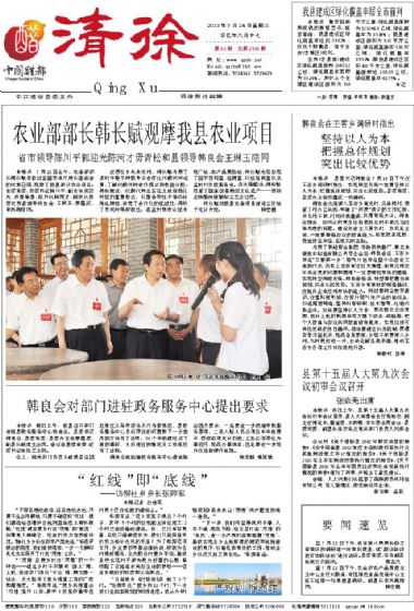 本报讯7月21日上午,农业部部长韩长赋率参加全国农业厅局长座谈会的代表莅清,观摩了我县部分农业项...