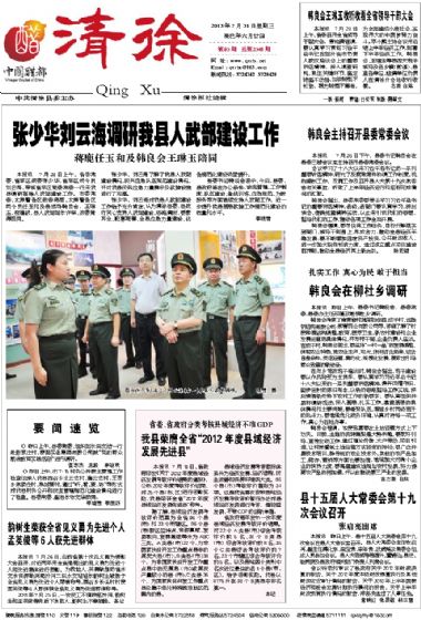 本报讯7月28日上午,省委常委、省军区政委张少华,省军区司令员刘云海,带领省军区党委常委一行来我...