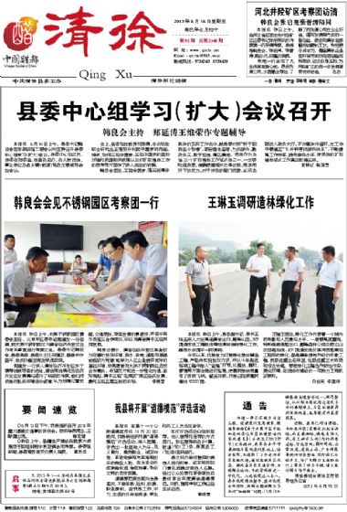 本报讯昨日上午,由河北省石家庄市井陉矿区区委书记张旭带队的考察团一行来清考察。县领导韩良会、张启...