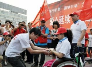 “善行使者·圆梦行动”由河北省文明办、河北省志愿服务指导委员会办公室主办,“善行使者·圆梦行动”组委会、润石集团承办,河北省志愿服务基金会协办。活动通过“善行使者”徒步公益接力的方式,穿越河北、山西、陕西、甘肃、宁夏、青海、西藏等7个省(自治区)36个县市91个村镇,全程近4000公里。沿途所到之处将实施“四助”善行工程,资助贫困学生1000个,捐赠公益小学7所;资助残疾人1000名,送技能再就业;关爱1000个孤寡老人,在河北筹建一所养老院;实施善行文化传播推介,举办100场幸福讲座等爱心行动。活动现场,善心使者李枋将各界爱心人士捐赠的6万余元善款交给了曹亚龙的家人。