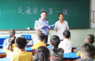 新学年开学之际,县交警大队干警深入各中小学校就学校交通安全常识进行授课。图为干警在东于镇东高白小学授课。