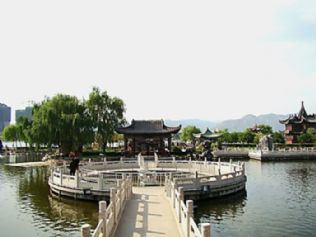 湖中有渚,旧为荒芜滩涂。今辟新景曰怡心园,园中有亭台阁榭,南北风光相映成趣,渚岸以桥相连,游旅络绎其上。