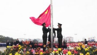 县四大班子领导与全县社会各界代表在东湖广场举行升旗仪式