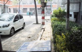 湖东三街两块印有道路交通标志的指示牌倒在路边,无人问津。