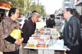 老年活动中心的图书室里,图书管理员王永发正在招呼着图书馆的张巍、孙美文等人拆包、点数、存放书籍,涌进来几位老人,他们迫不及待地一人拿起一本书翻看:“太好了,这么多历史和保健方面的书籍。管理员,我们能不能带几本回家看?”王永发赶忙“夺”过书籍:“别急,等和人家图书馆交接完了,大家想怎么看怎么看。”看着新添了的满满两柜子的书籍,听着图书馆的赵晓娟“看完了还需要哪些方面的书籍就给我们打电话”的话语,王永发高兴地笑了……