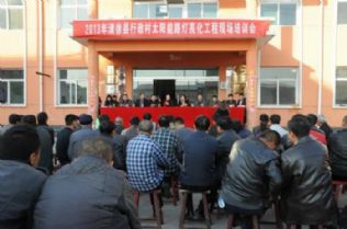 11月7日下午,县新农办组织相关人员在徐沟镇举行太阳能路灯亮化工程现场培训会。据悉,太阳能路灯亮化工程是省政府2013年为农民群众办的五件实事之一,我县今年需要完成116个行政村的太阳能路灯安装任务。