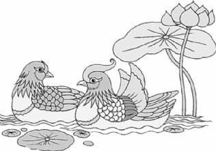 晋人陆云,字士龙,年轻时与其兄陆机齐名,号曰“二陆”。晋人郑丰有《答陆士龙书》四首,第一首题名《鸳鸯》,序文曰:“鸳鸯,美贤也,有贤者二人,双飞东岳,扬辉上京。”此处是以“鸳鸯”比喻陆机、陆云兄弟的。“得成比目何辞死,愿作鸳鸯不羡仙。”唐朝诗人卢照邻在《长安古意》中把一对情侣的情切切意绵绵刻画得淋漓尽致。据1980年版的《辞海》,以“鸳鸯”比夫妇,即始于卢照邻的诗。从此,“鸳鸯”成为相亲相爱、白头偕老的表率,成了人们心目中永恒爱情的象征。